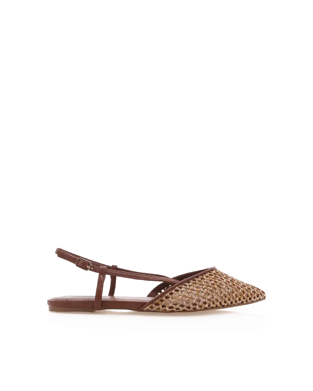 -Elasticated sling back strap with gold buckle detailing