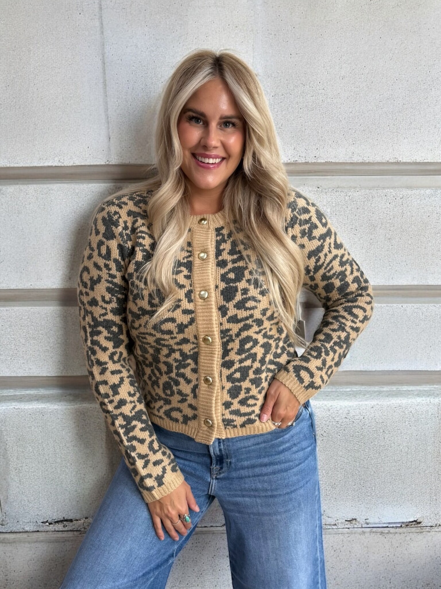 The Callie Leopard Cardigan brings fierce energy to a classic knit. With its soft, laid back fit and untamed print, it's the perfect throw on when you want comfort that still makes a statement.