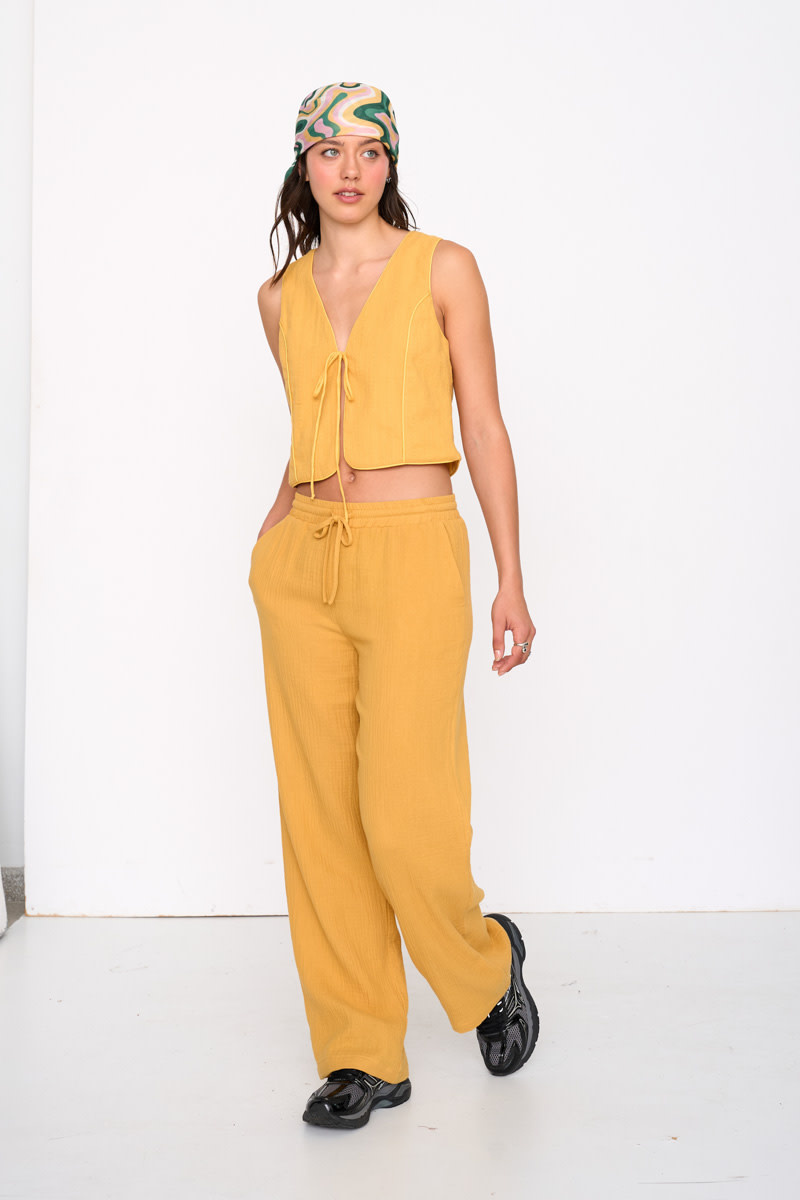 Designed with a flattering deep V neckline and delicate front tie closure, it brings just the right amount of structure while keeping things relaxed and breathable. Pair it with tailored trousers or denim for an easy, polished outfit.