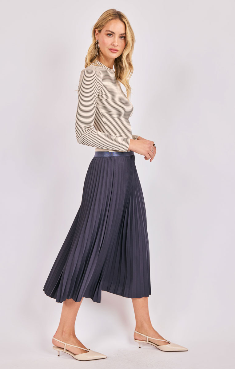 The Charm Pleated Skirt brings sophistication and effortless style to any outfit. With its flowing silhouette and classic length, it's perfect for dressing up with blouses or keeping it casual with knits or tees, making every step feel polished and graceful.