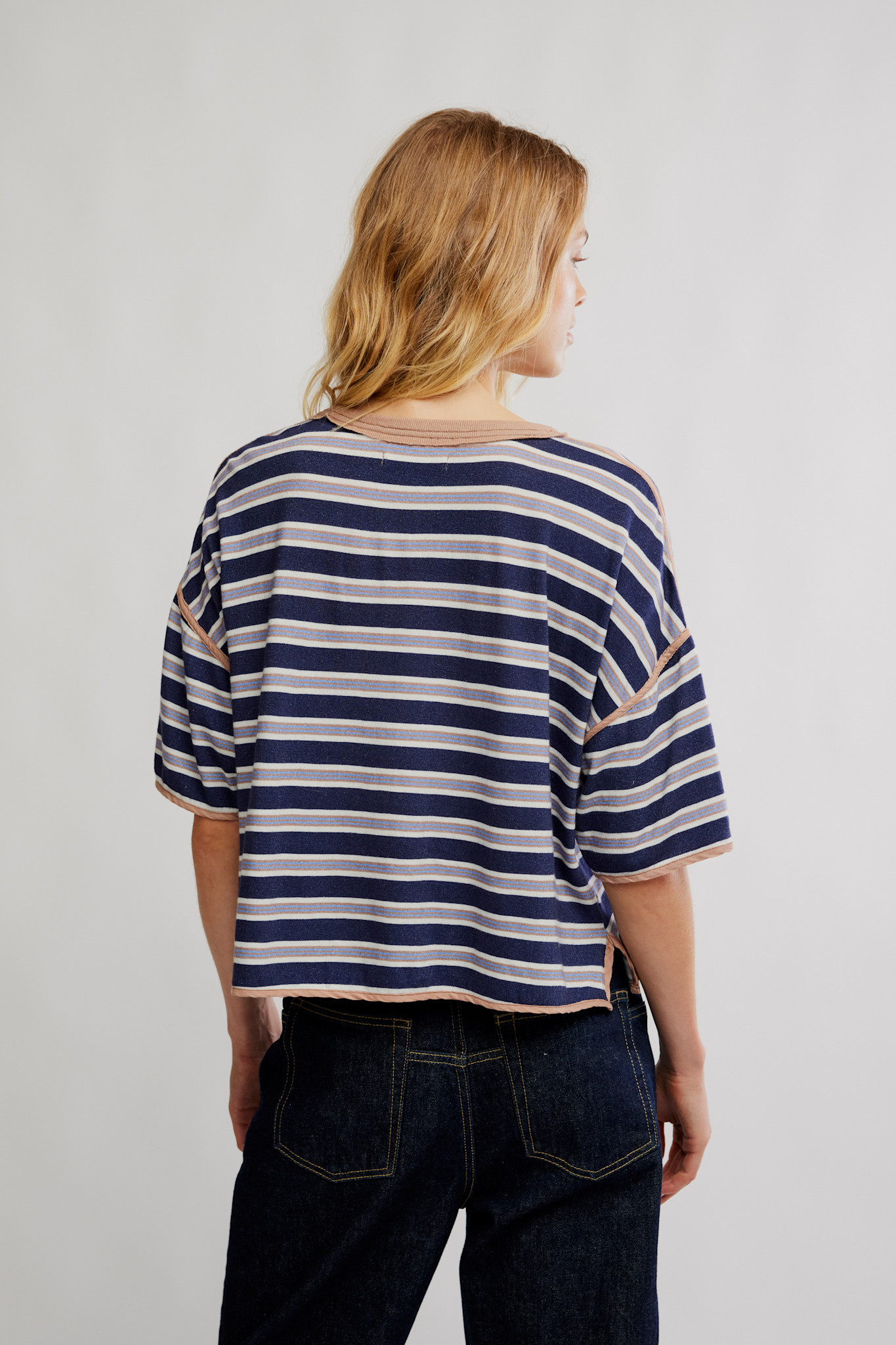 Sporty, retro, comfy–we’re bringing all of our favorite vibes into one tee with this staple option from We The Free, featured in a cropped, boxy fit with a fun striped print and extra wide short sleeves.
