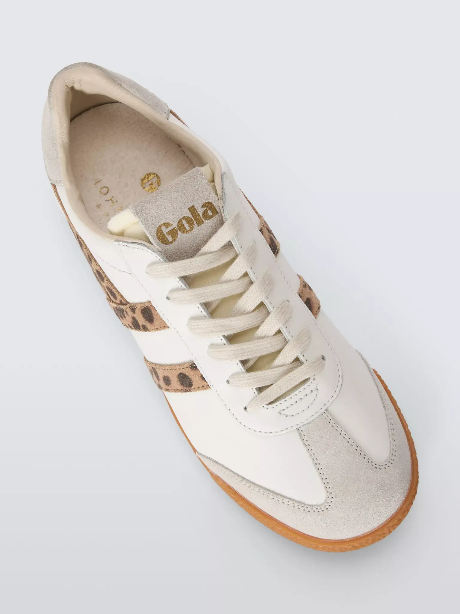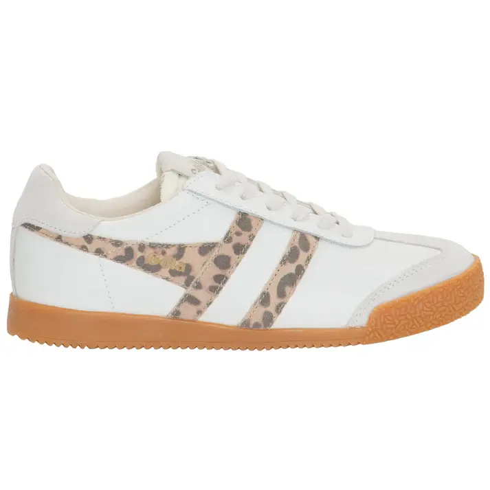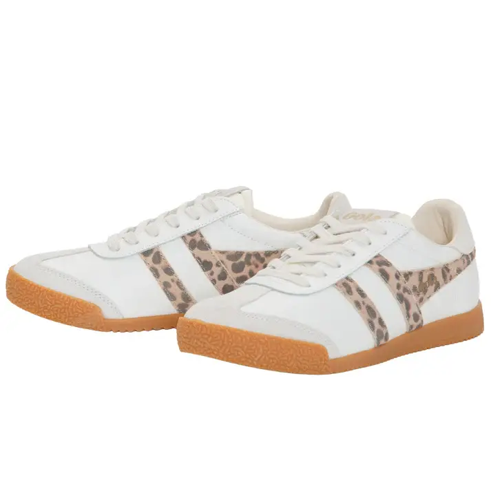 When it comes to heritage sports Gola has a tale to tell and Elan’s roots as a multi-purpose training shoe can authentically make this claim. An old school gum sole, in just the right vintage tone, is reminiscent of days in the school gym, whilst striking color combinations such as this LEOPARD AND WHITE, give a thoroughly modern looking women’s sneaker. You’re not mistaken if you can see the resemblance to Gola’s flagship Harrier style, Elan is almost a twin but has an additional heel tab panel to give an extra color pop. Selling out as quickly as we get them in, this is the hottest women’s Gola sneaker of the season.