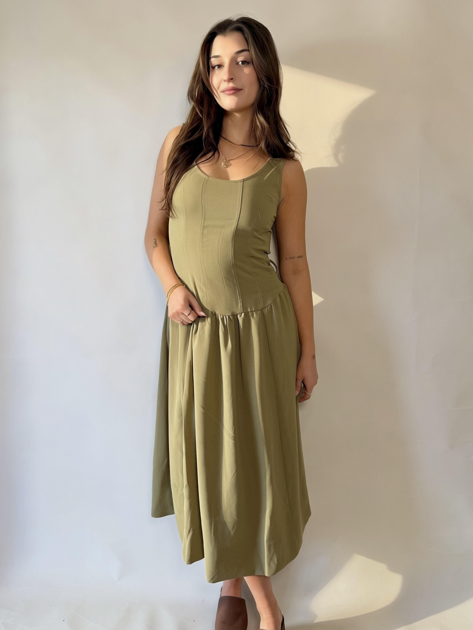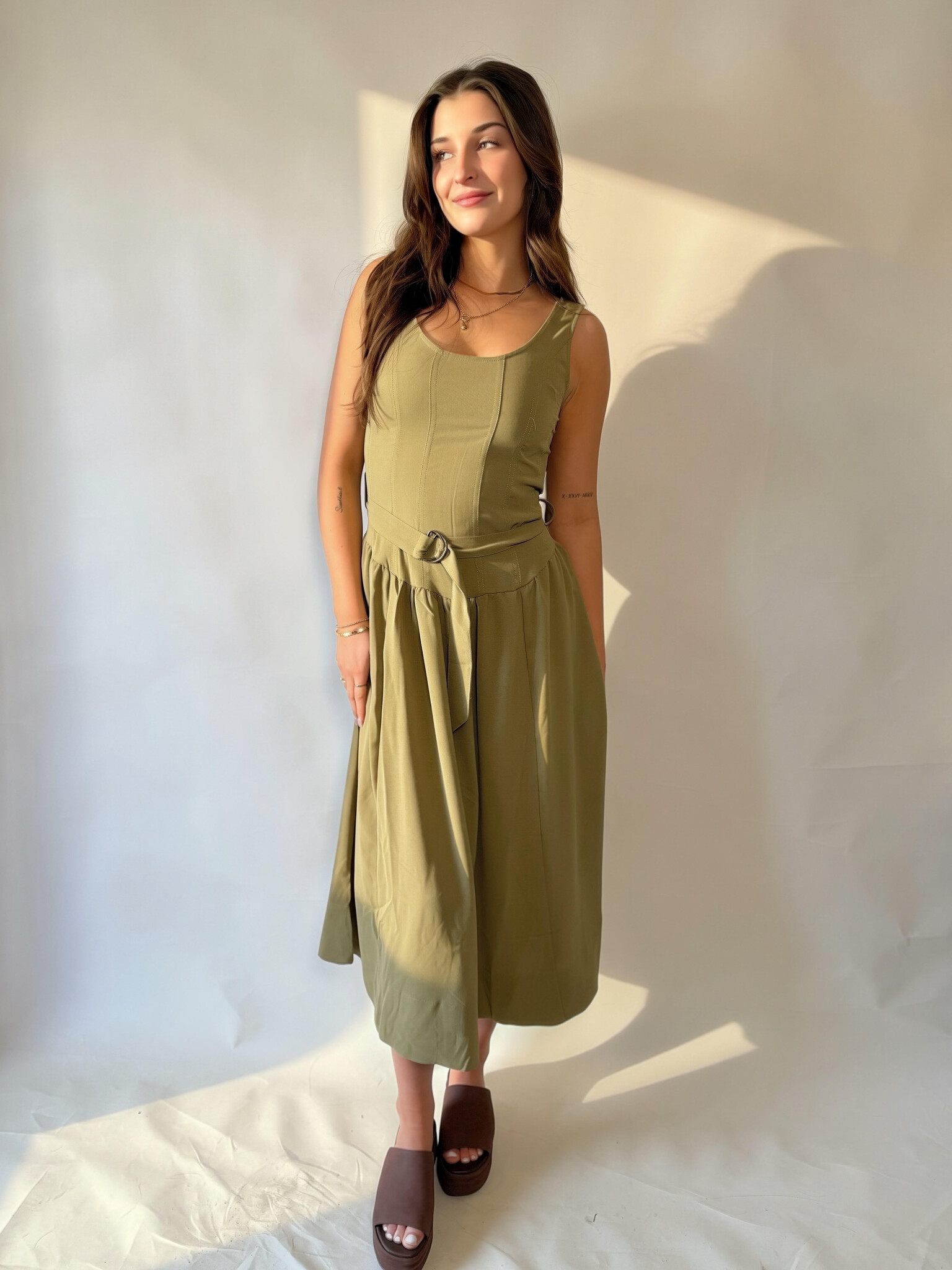 The Eliana Dress features a utility inspired design with a flattering tie waist that cinches your shape just right. Polished yet practical, it's an easy, wear anywhere piece that balances structured details with laid back comfort.