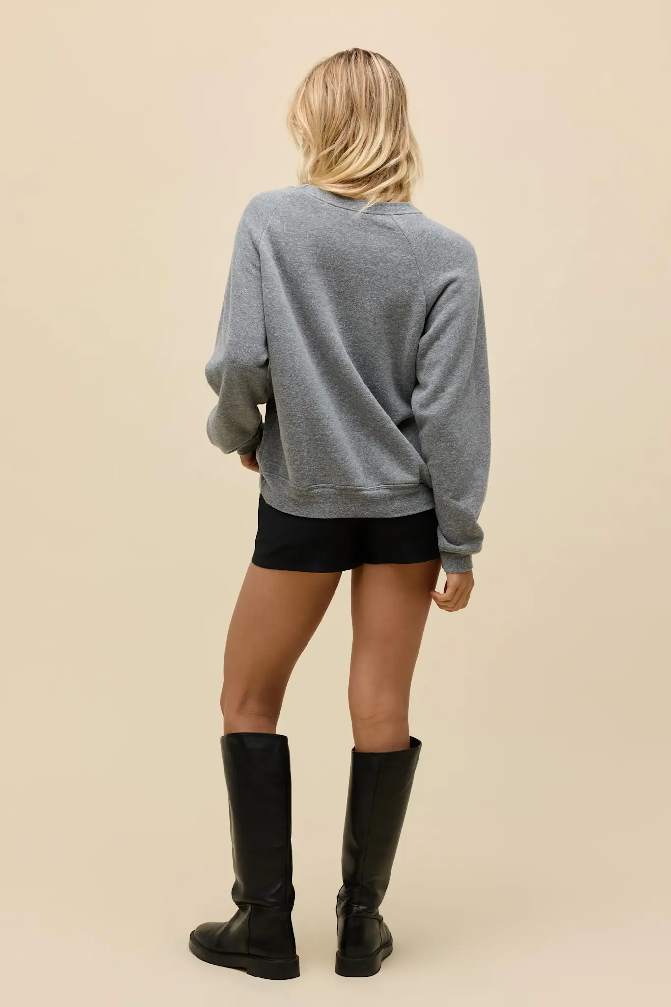 -Accented with raglan seam details and a crew neckline