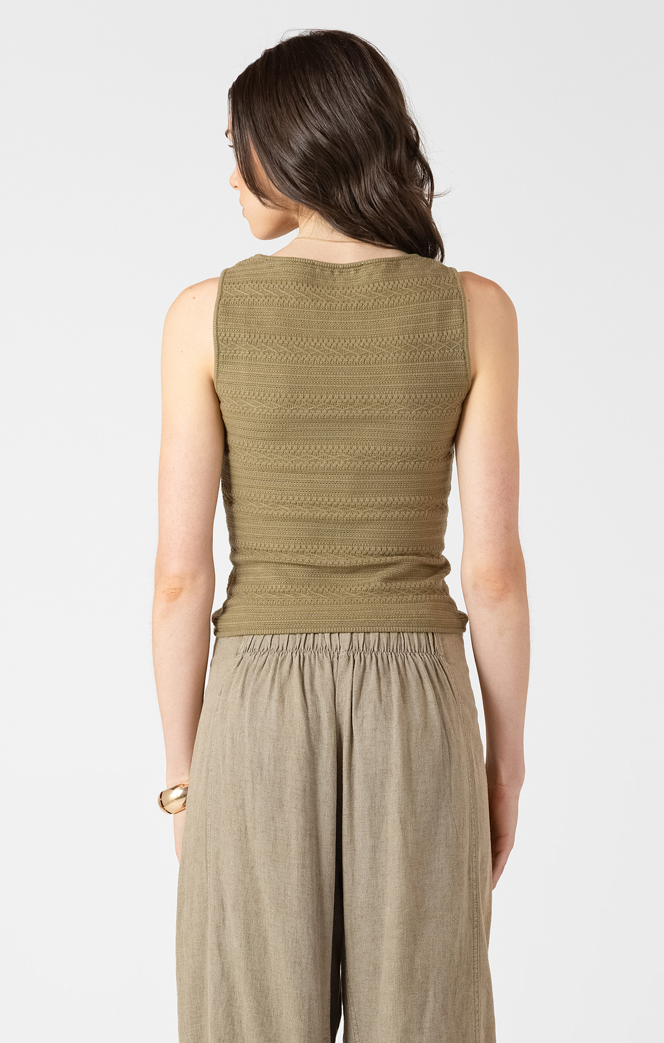 The Evie Tank features a clean square neckline for a modern, flattering look. Easy to wear and endlessly versatile, it adds subtle dimension to any outfit. Perfect on its own or layered for effortless everyday chic.