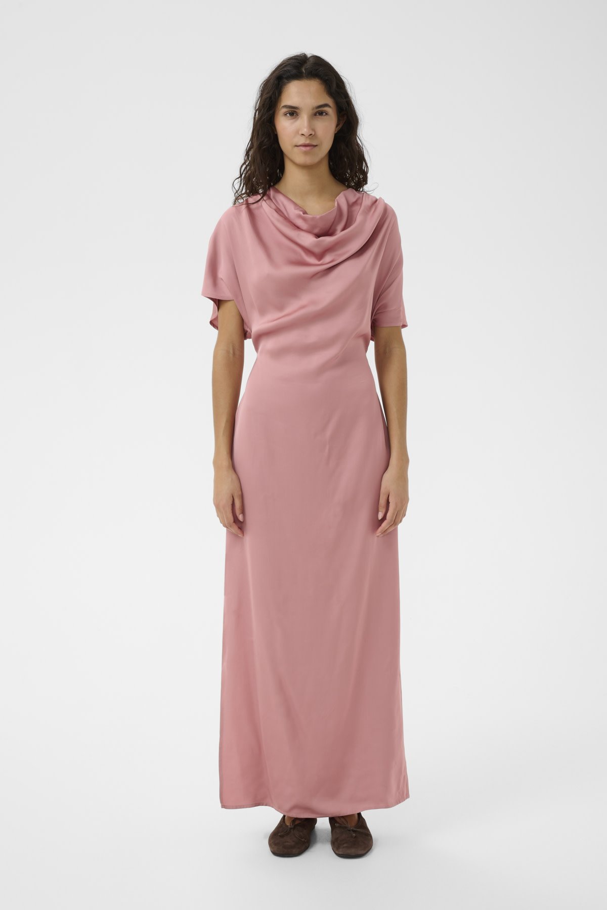 This blush-toned maxi dress features a beautifully draped cowl neckline and a sleek, fluid silhouette that skims the body in all the right places. Crafted from a silky, lightweight fabric, it moves effortlessly and feels as good as it looks. Perfect for special occasions or refined everyday wear, this piece is all about quiet luxury and timeless appeal.