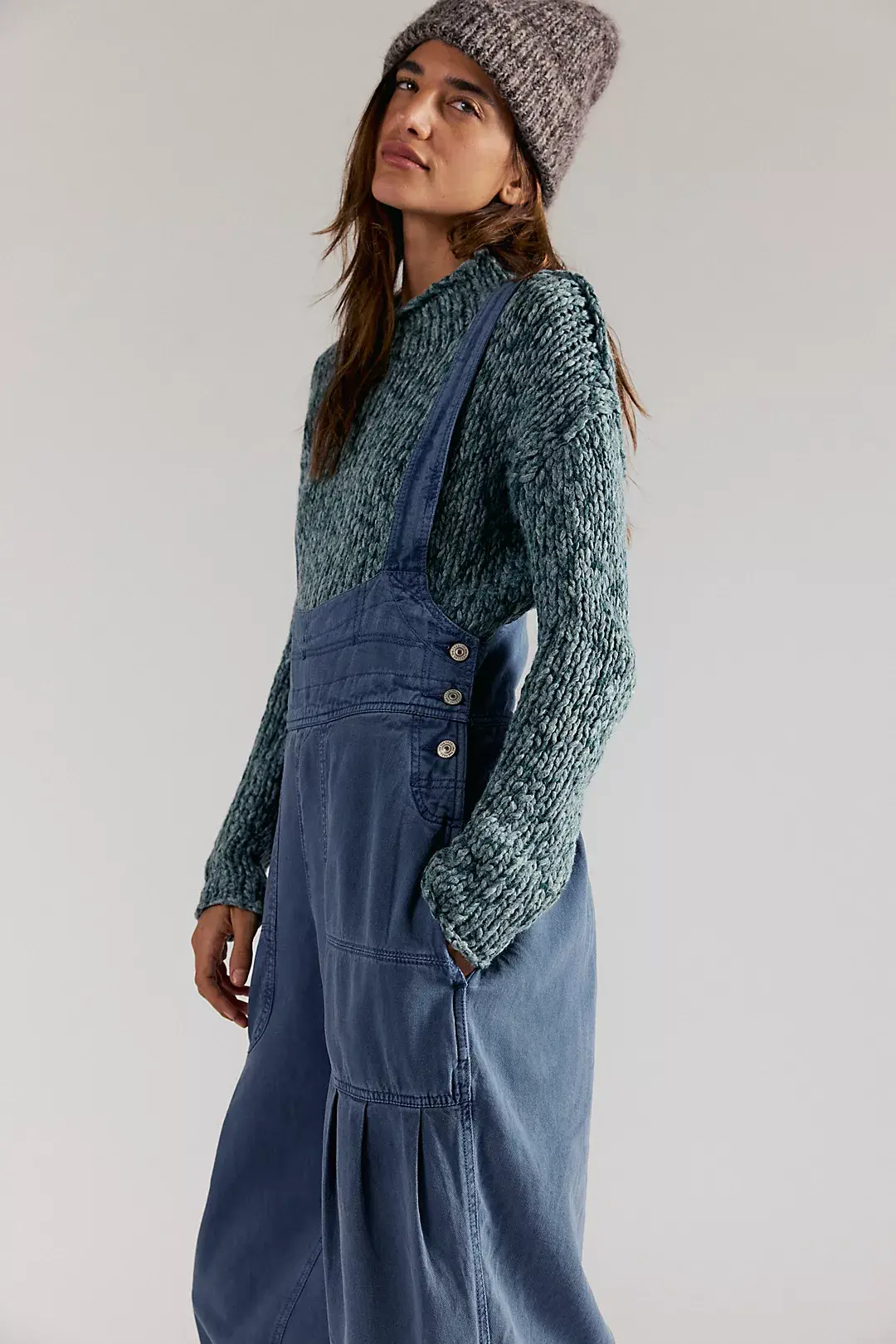 -Fit: Slim, pinafore-style bodice with barrel leg design