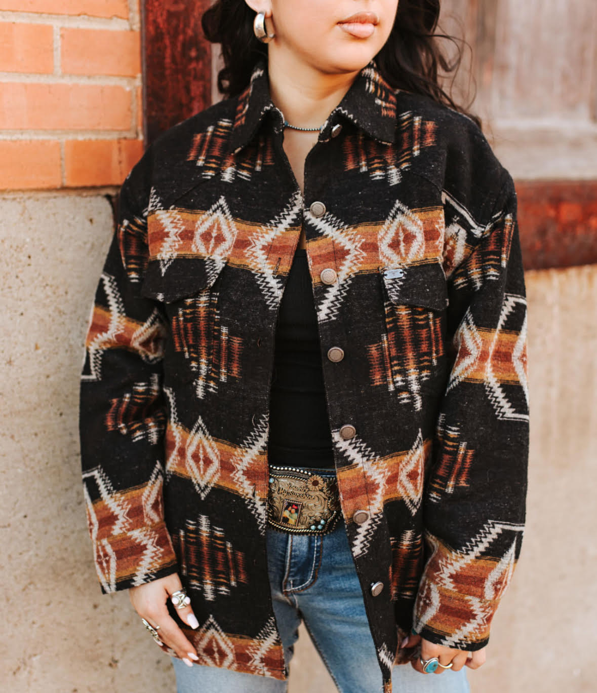 Southwestern shacket effortlessly combines the casual comfort of a tunic with the cozy appeal of a jacket!