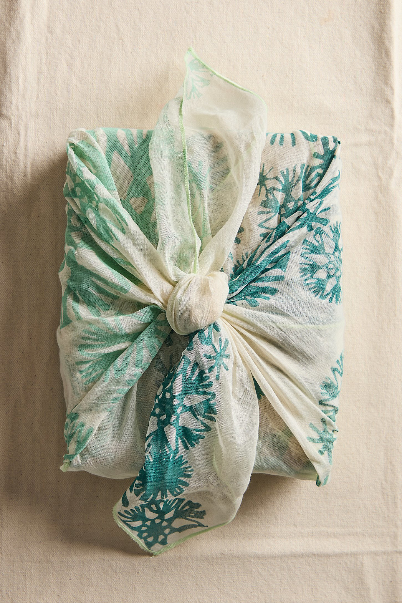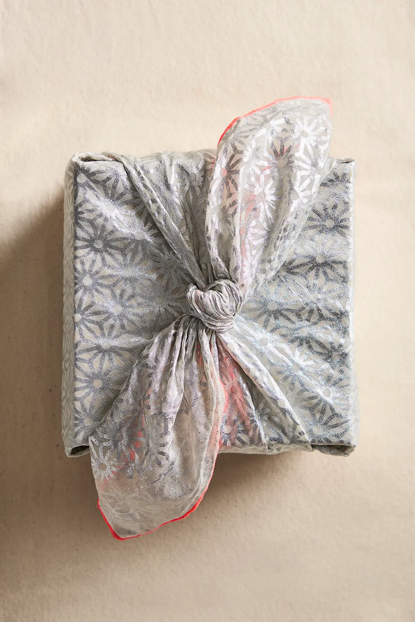 Reusable gift wrap designed for tying up and adorning with a piece of pine or a sweet ribbon.