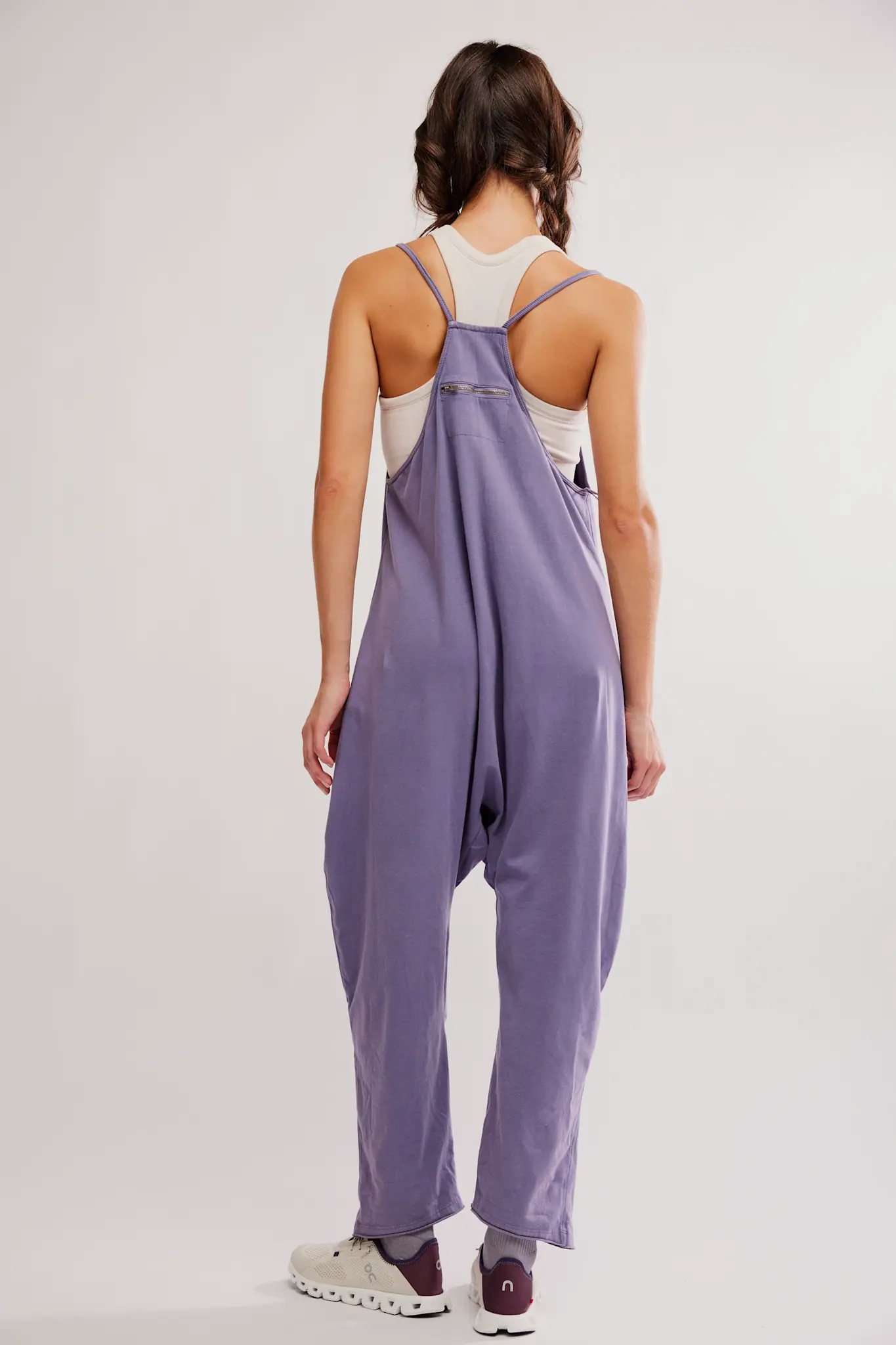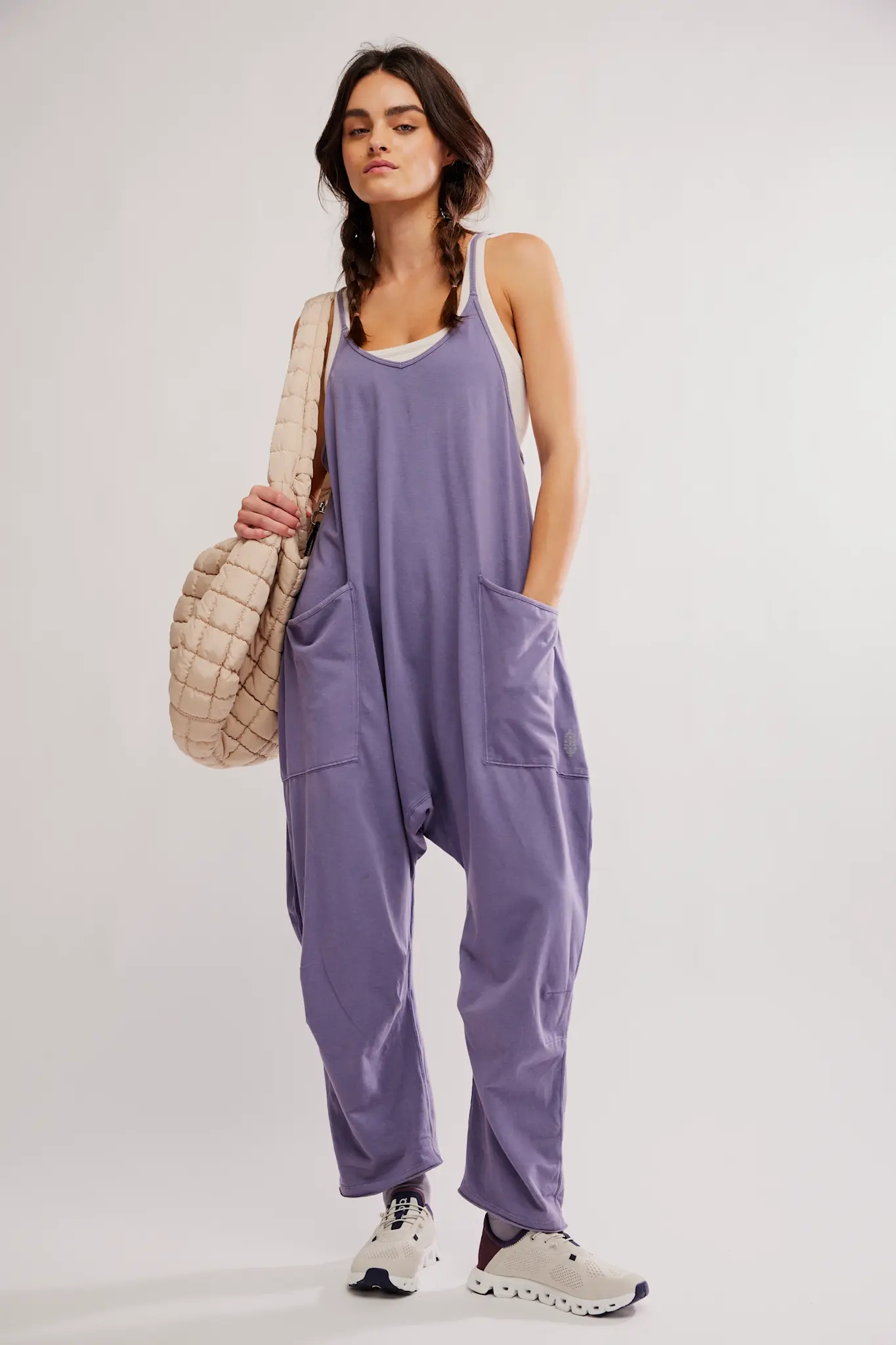 This soft and comfy onesie features a slouchy, relaxed-fitting design with a dropped crotch and convenient side pockets.