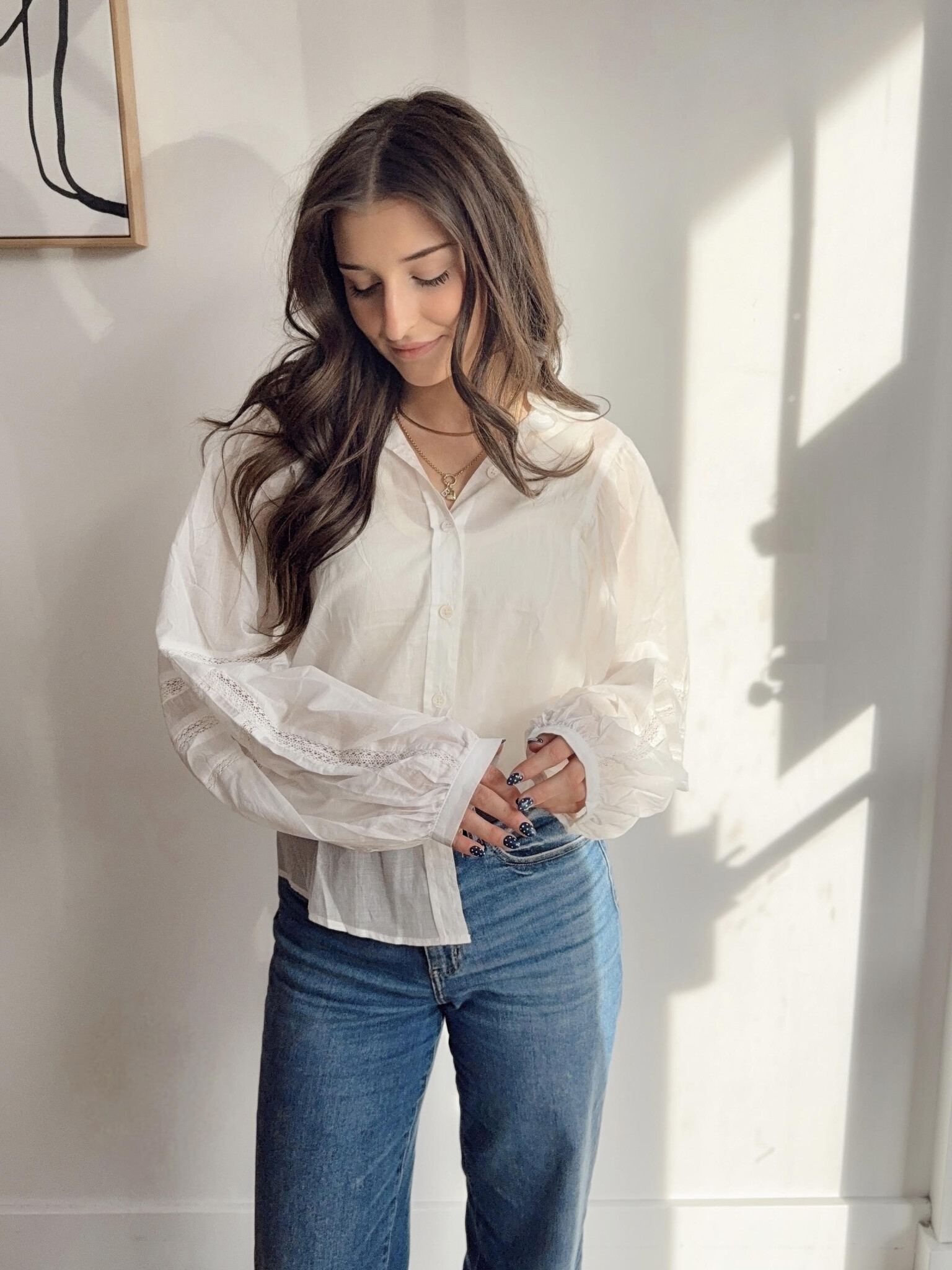 The Kos Shirt features delicate lace inserts and a soft, flowy silhouette that feels both timeless and feminine. With long sleeves and graceful movement, it's the perfect piece to elevate everyday looks with a touch of subtle romance.