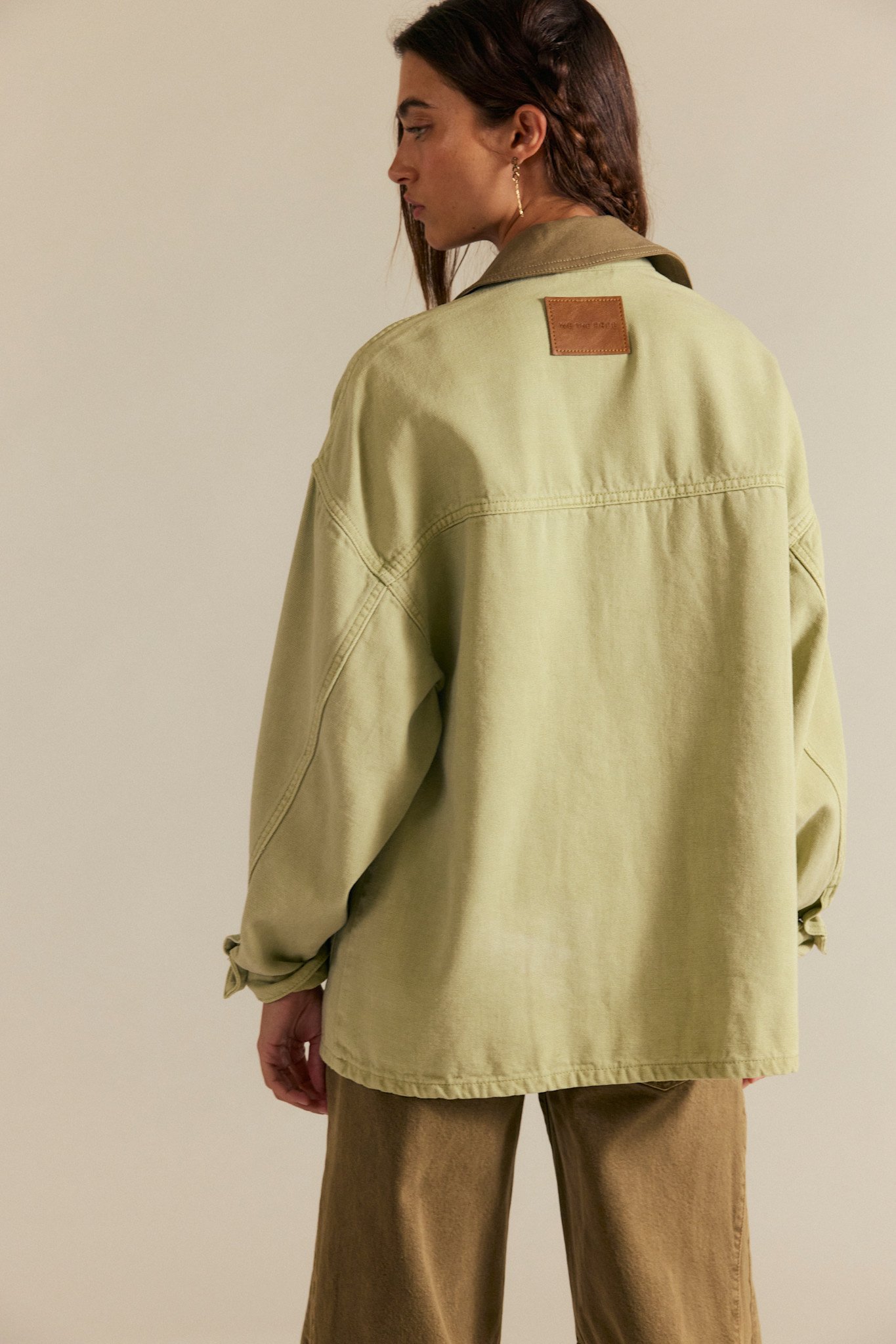 This staple denim jacket features asymmetrical pockets and a contrasting canvas collar for subtle details that truly make the piece.