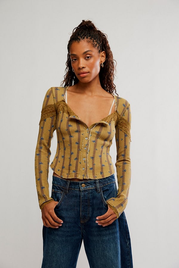 Lace trims give this waffle-knit cardigan the perfect femme touch.