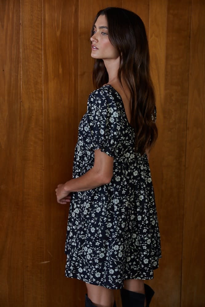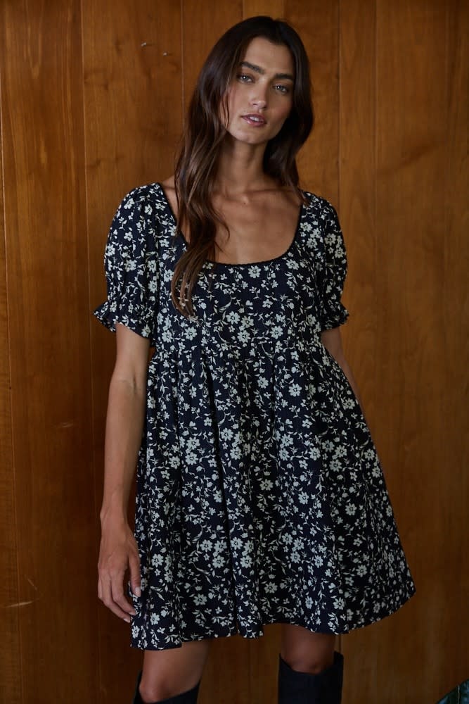 Crafted from lightweight woven polyester, this dress features a flattering scoop neckline and soft short sleeves for an effortlessly feminine look. The flared skirt creates beautiful movement, while the cotton lining ensures breathable comfort and coverage. Perfect for brunch dates, garden parties, or weekend outings, this mini dress is an easy, feel-good piece you’ll reach for all season long.