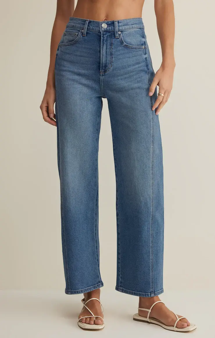 Vintage comfort stretch denim meets a modern bowed silhouette in this easy cropped jean.