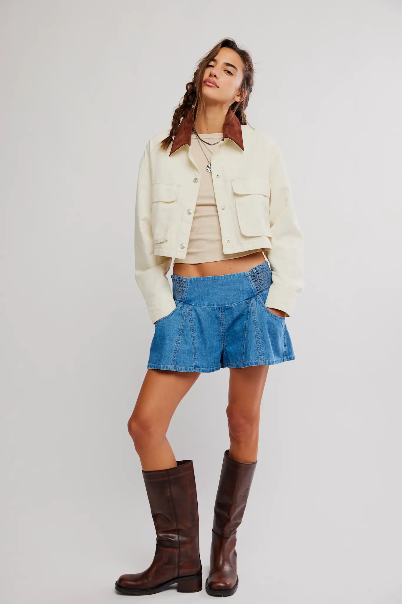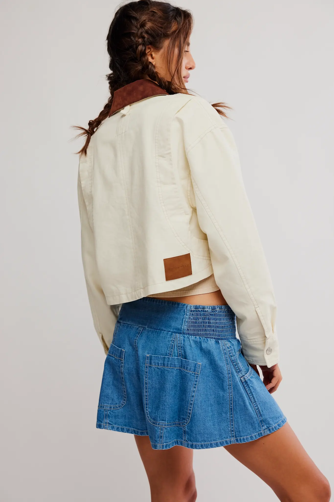 This wear-anywhere workwear jacket is featured in a super-cropped, boxy silhouette with exaggerated pocket detailing for the perfect utility-inspired touch.