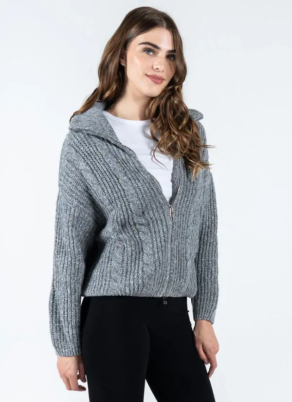 Stay cozy in effortless style with our Mixed Yarn Zip-Up Cardigan!