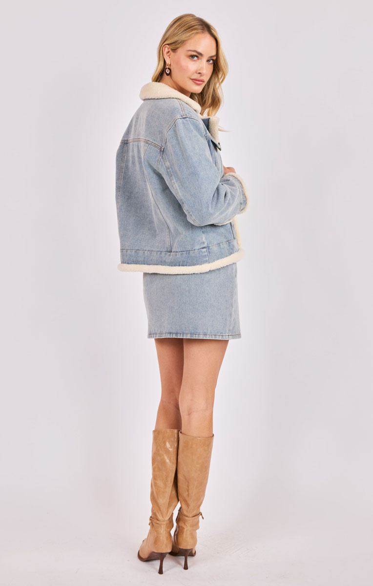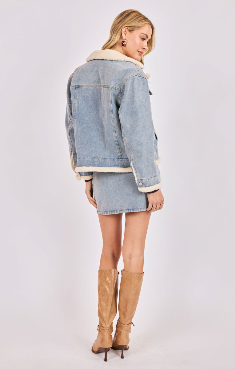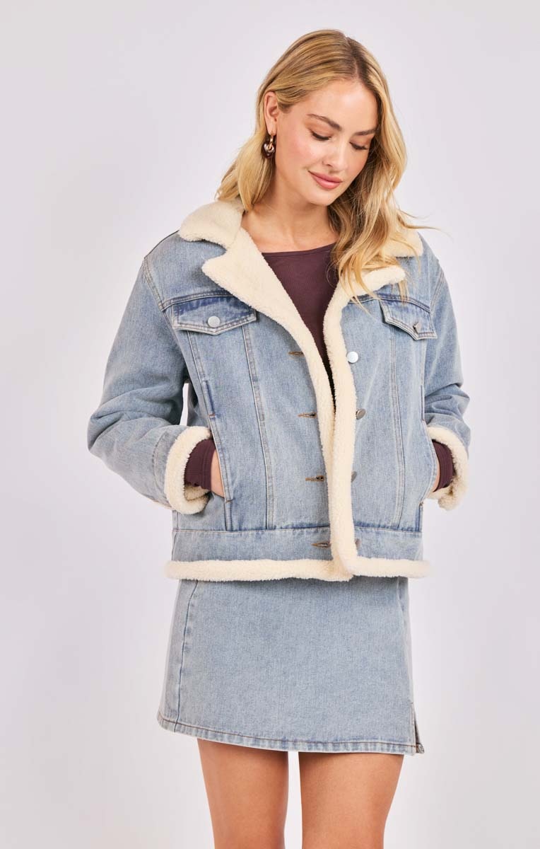 The Metropolis Denim Jacket features a soft sherpa lining and classic button closure for that perfect mix of cool and snug. The cropped fit adds a modern edge, while the sherpa brings all the warm, laid back charm. A timeless staple with a touch of retro.