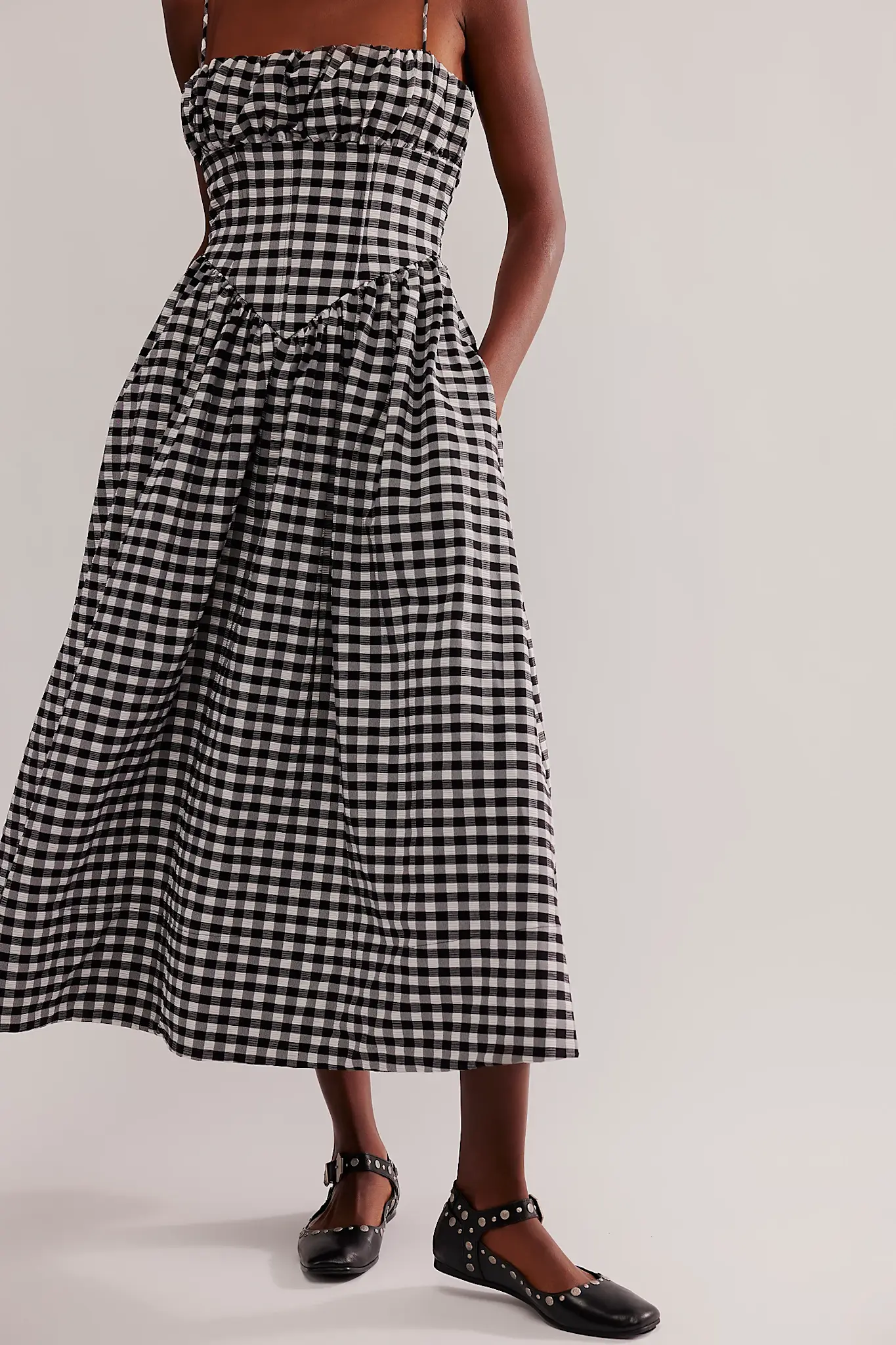Featured in a buttery soft leather with an adjustable ankle strap, stunning studded details, and a classic round toe.