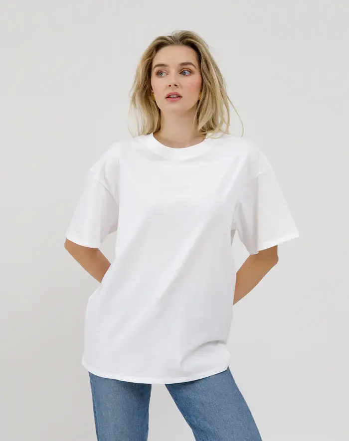 • Our 100% cotton Oversized Boxy Tee features a wide-cut body and hits below your hips. Stick true to size for a perfectly slouchy, oversized fit - like that favourite vintage tee hanging in your closet.