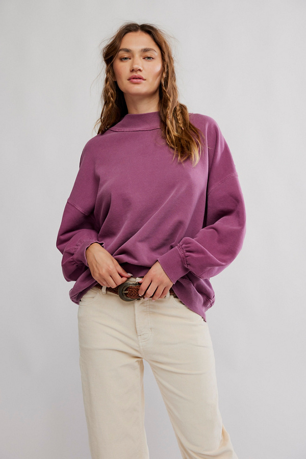 This vintage-inspired pullover is featured in a slouchy, relaxed fit with mock neckline and worn graphic detail at front for the perfect lived-in look.