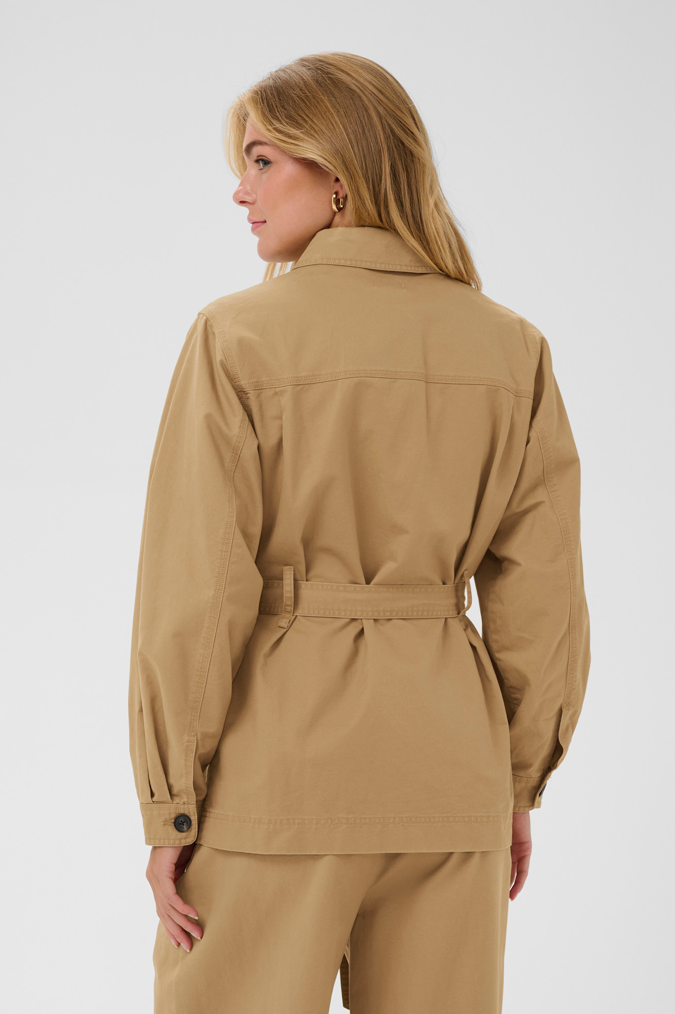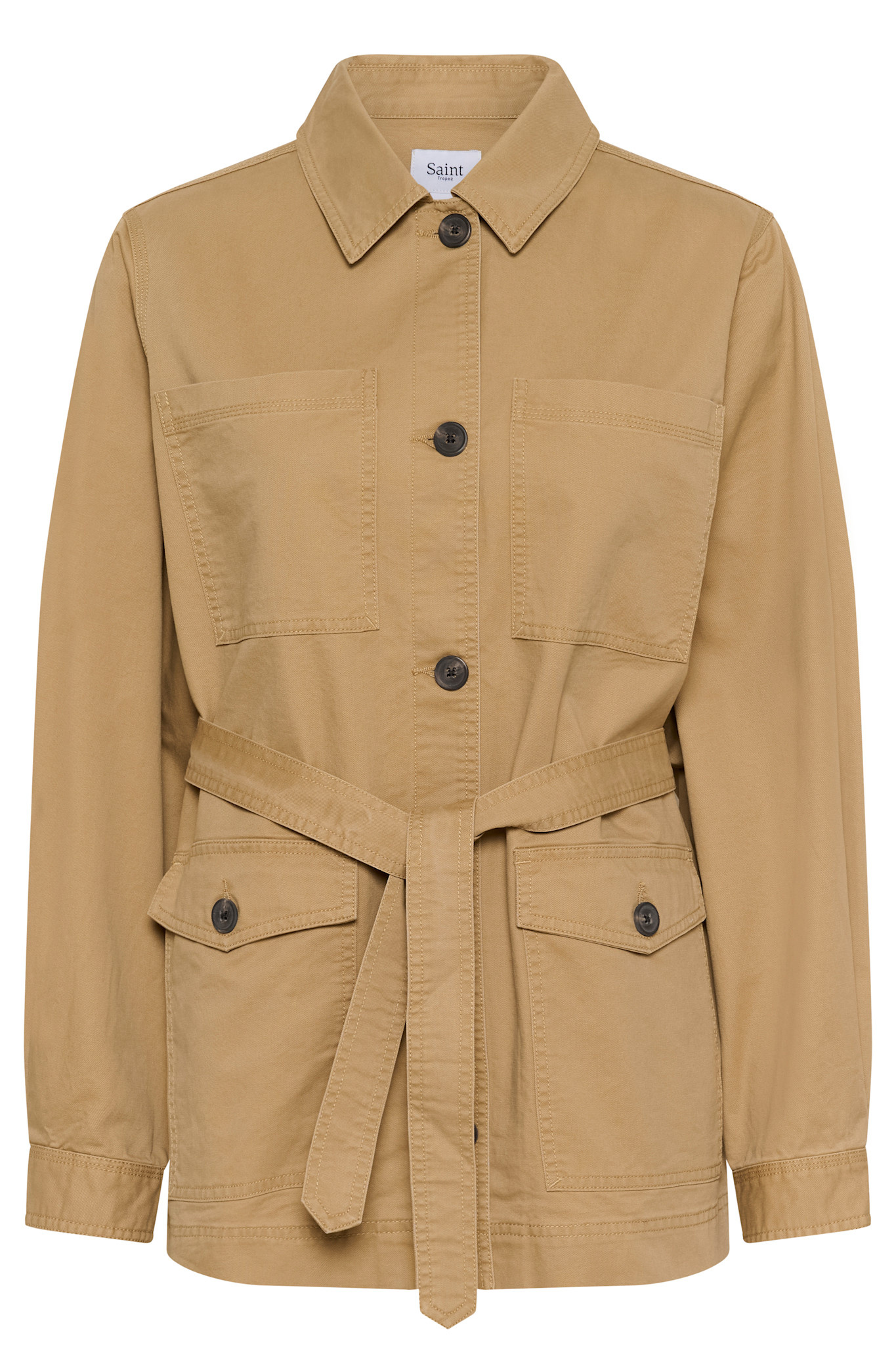 Designed with a structured silhouette, button-front closure, and a flattering tie belt at the waist, it creates a polished yet relaxed look. Finished with functional pockets and a classic collar, it’s the perfect layering piece for transitional seasons and casual chic outfits.