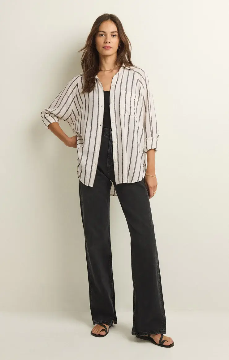 The Perfect Striped Linen Top has that soft, drapey feel you look for when the temps start rising. Throw it on over a tank, swim suit or bralette for an effortless look no matter where you are.