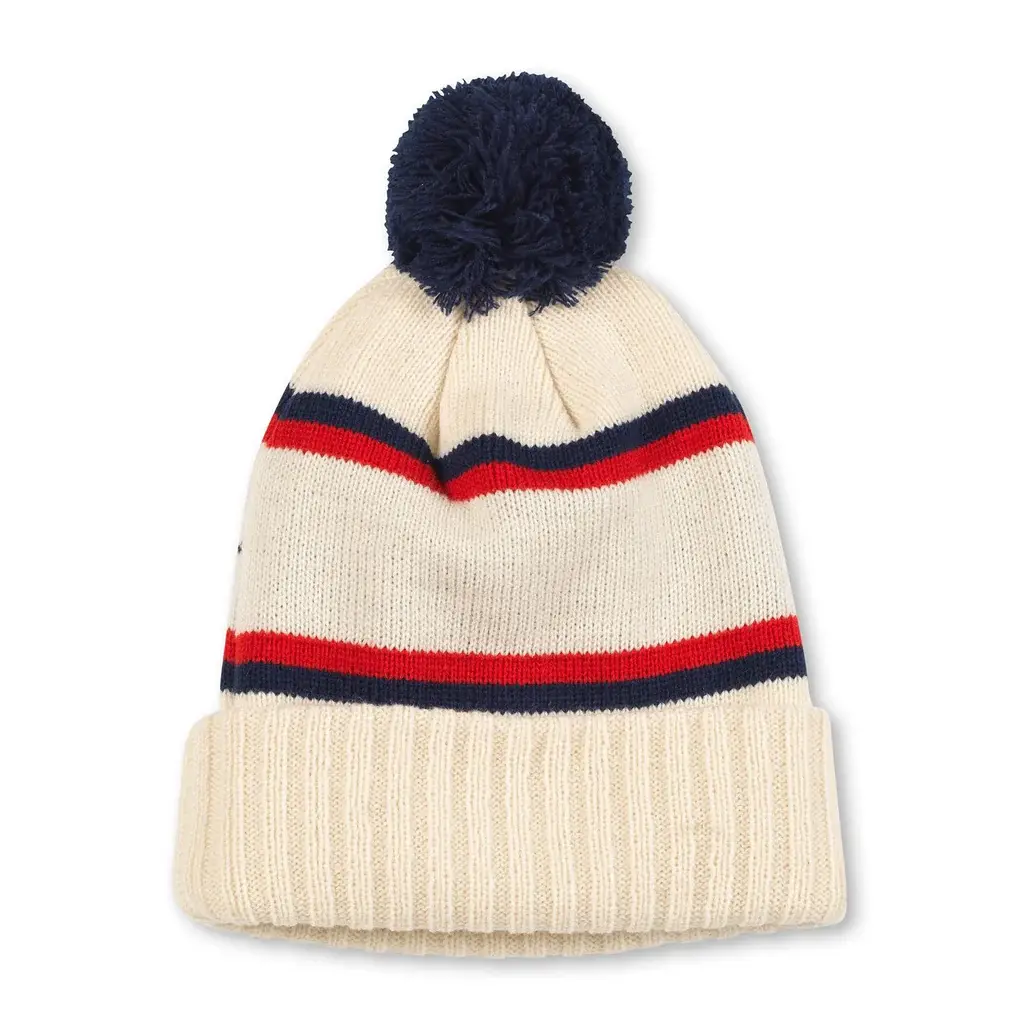 -Merrowed patch stitched on front.