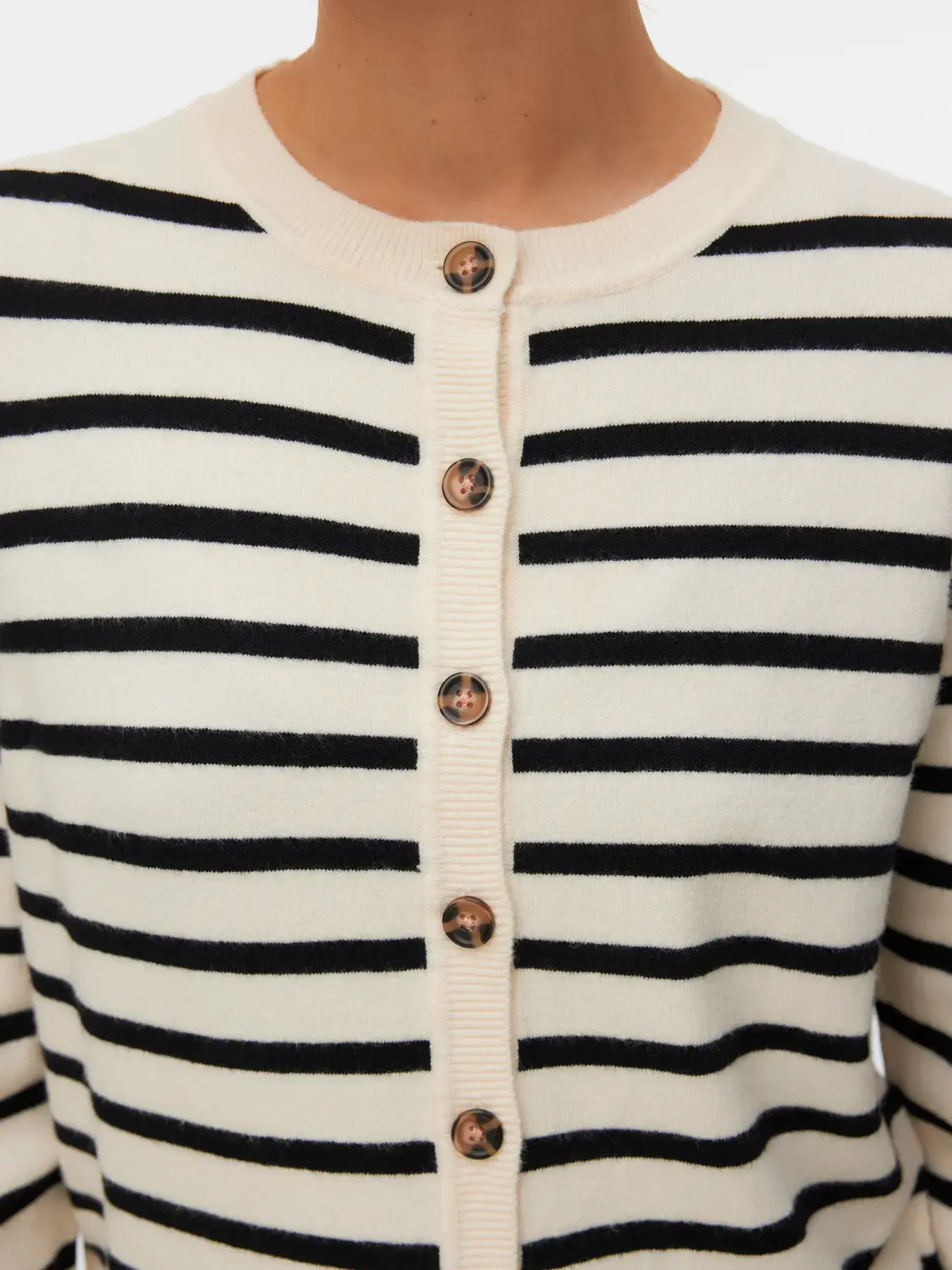 • This button-front cardigan is timeless. Crafted from a soft, finely knitted fabric, it drapes beautifully against the body while maintaining a polished silhouette. The minimalist round neckline and lustrous button detailing lend understated sophistication, making it an impeccable layering piece for both day and evening wear. Designed to transcend trends, this cardigan embodies quiet confidence and enduring style.