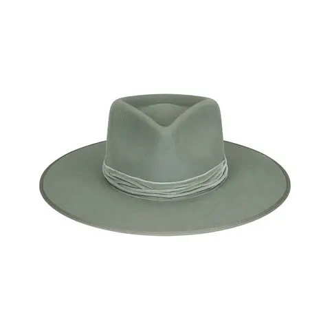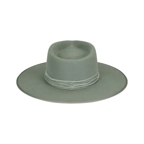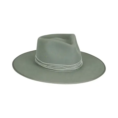 A stiffened wool fedora with rigid crown design. Trimmed on hat and rim with tonal gross grain ribbon.