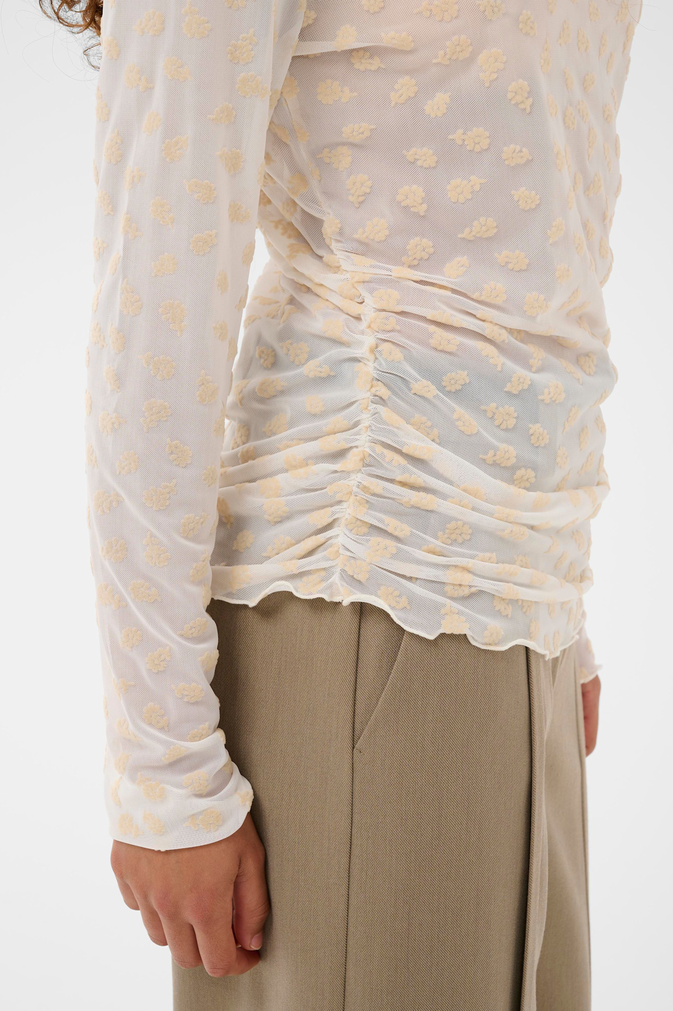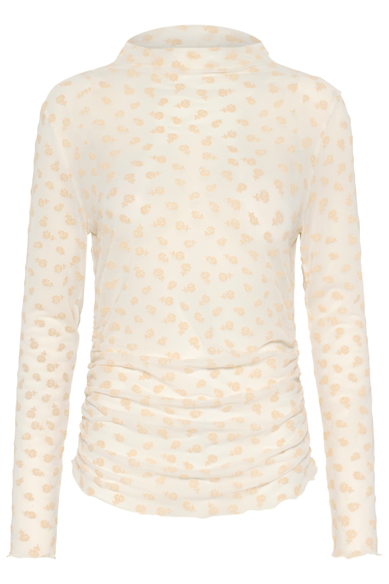 • This mesh top features a fitted silhouette with long sleeves, a high neckline and all-over floral motif. Lightly ruched sides and semi-sheer finish. Layer under your favorite vest, graphic tee or wear as is!
