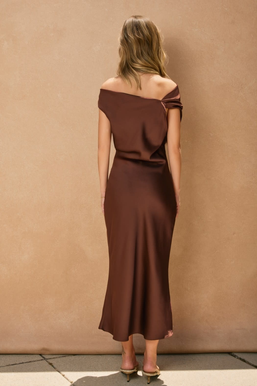 The Shelley Satin Off the Shoulder Midi Dress drapes beautifully with a soft, luminous finish. The exposed neckline adds a romantic touch while the midi length keeps it timeless and refined. Perfect for evenings when understated glamour speaks volumes.