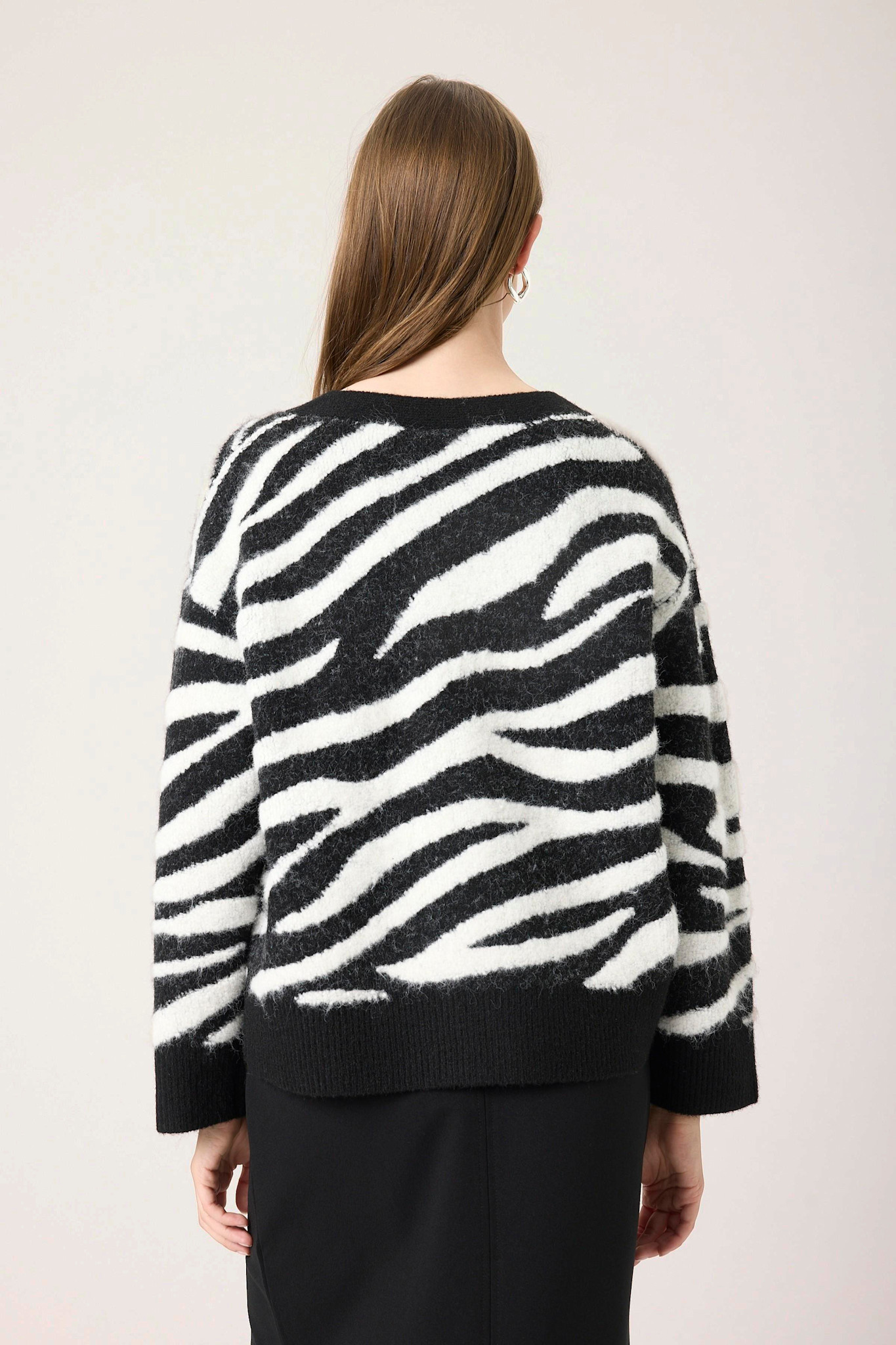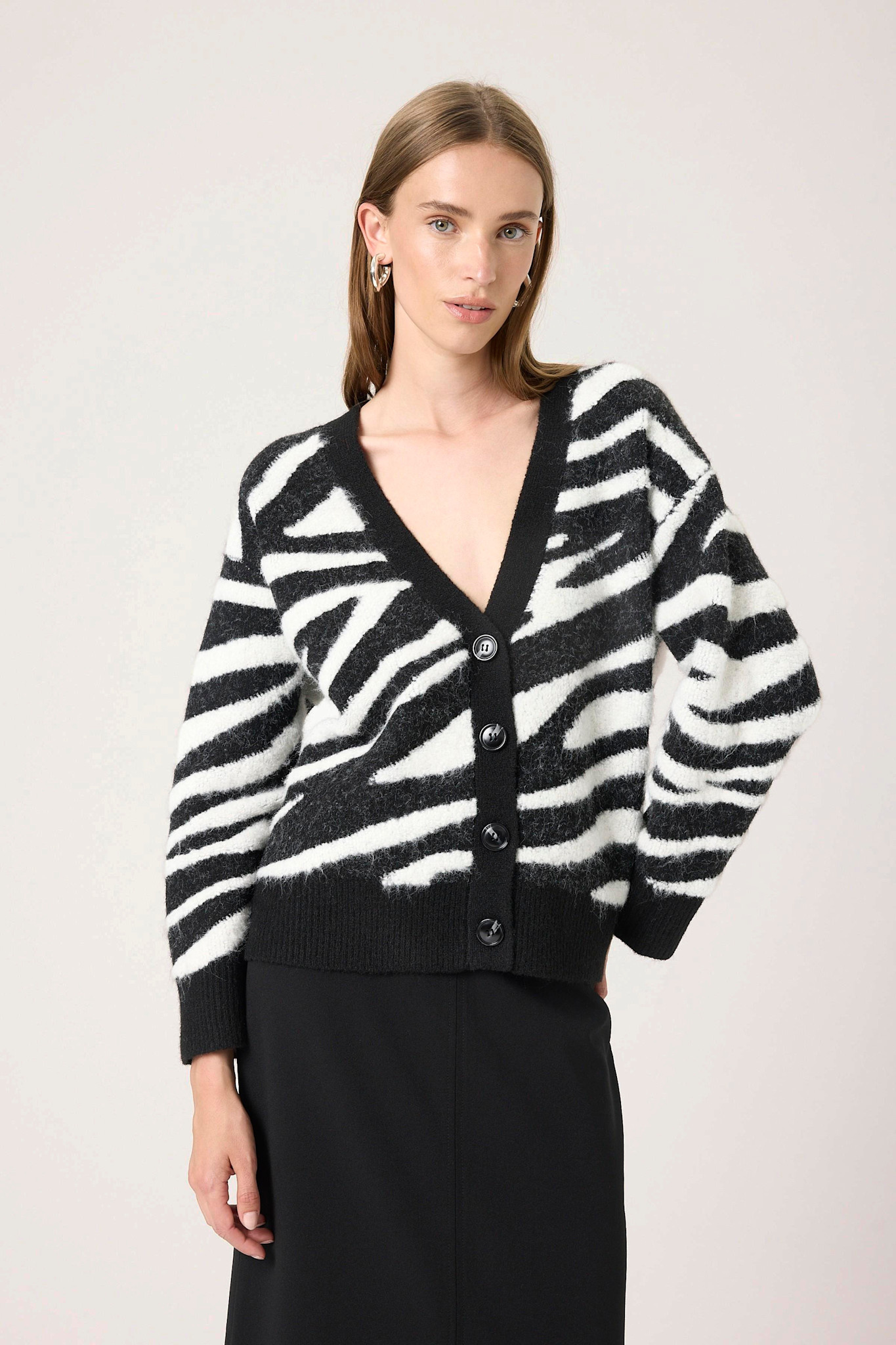 Add a bold touch to your wardrobe with this chic zebra print cardigan!