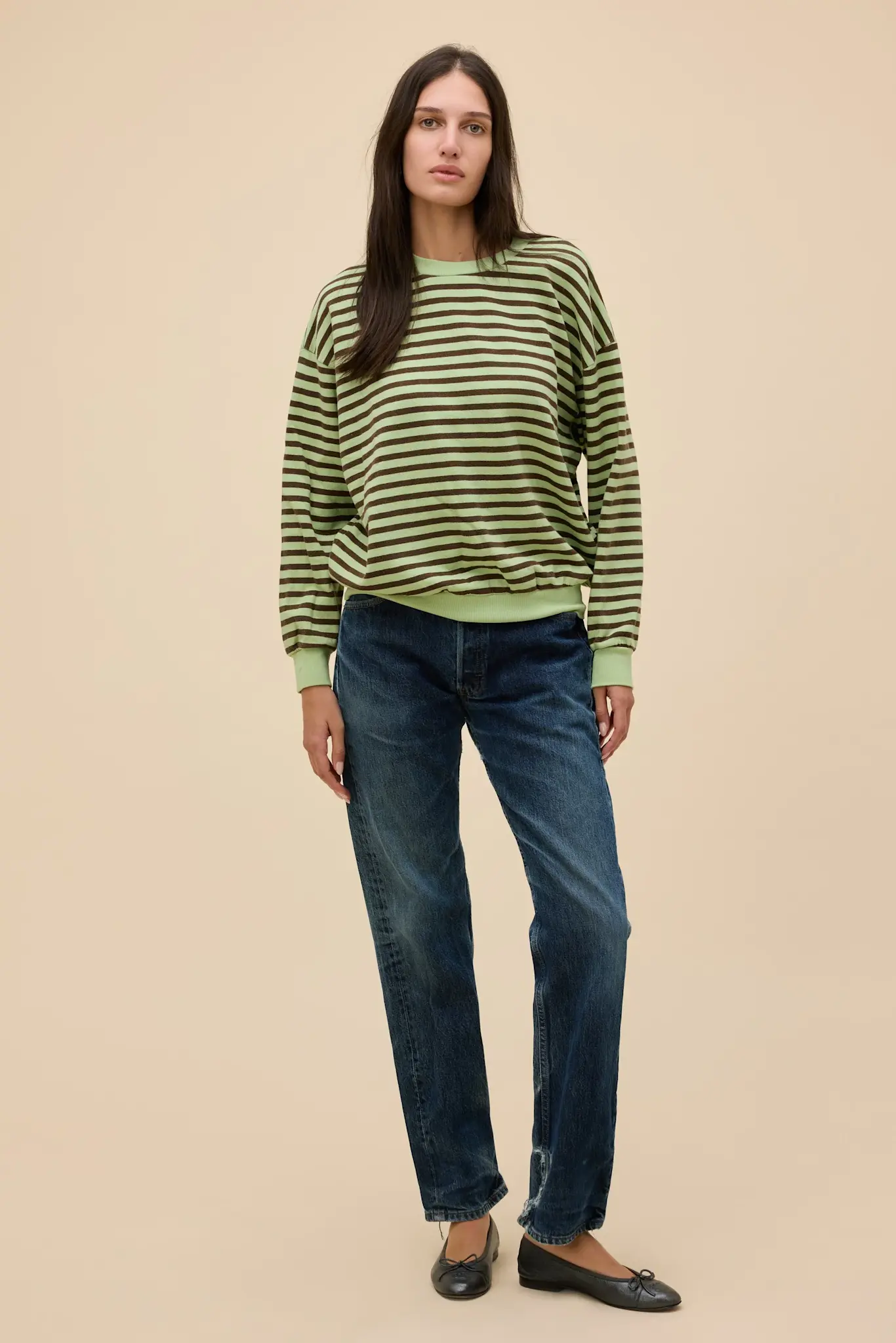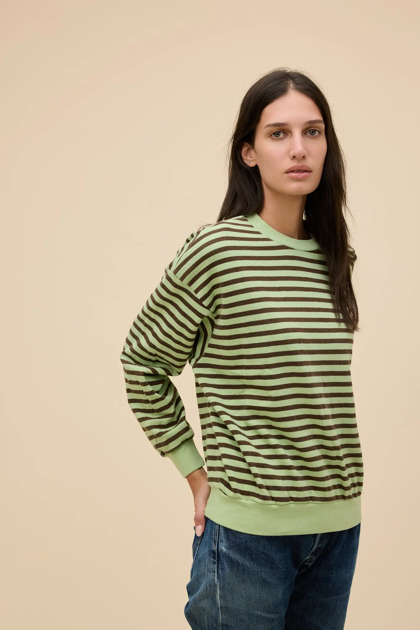 A Terry Sweatshirt designed with a crew neck and a dropped shoulder. Featuring a shrunken rib at the waist and wrist for a flattering bubble effect.