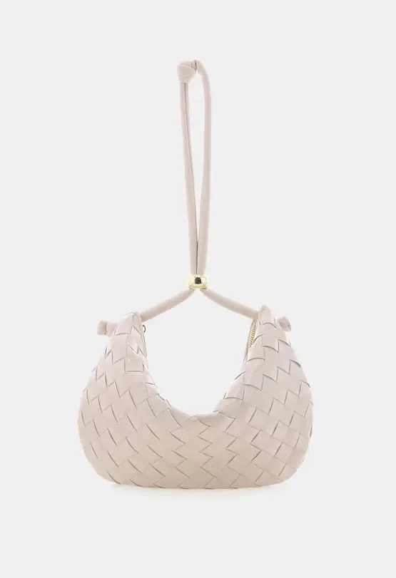 With its semi-structured crescent shape and full-length zip closure. Gold hardware and knot details elevate the look, while the textured woven exterior and interior compartment keep you organized. Versatile enough for day or night.