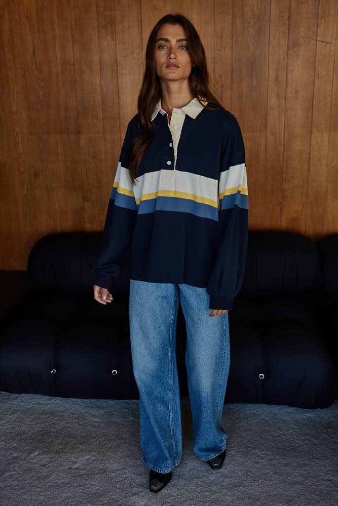 Elevate your everyday wardrobe with this effortlessly cool striped rugby-style pullover!