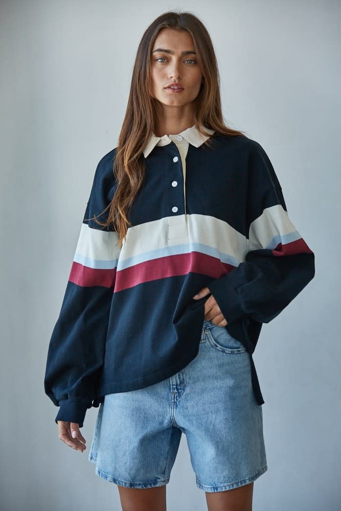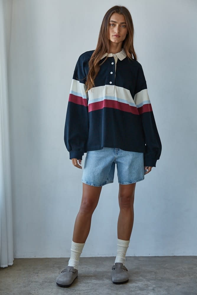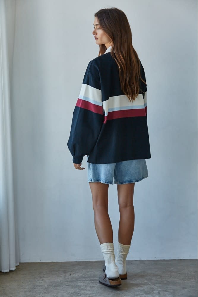 Elevate your everyday wardrobe with this effortlessly cool striped rugby-style pullover!