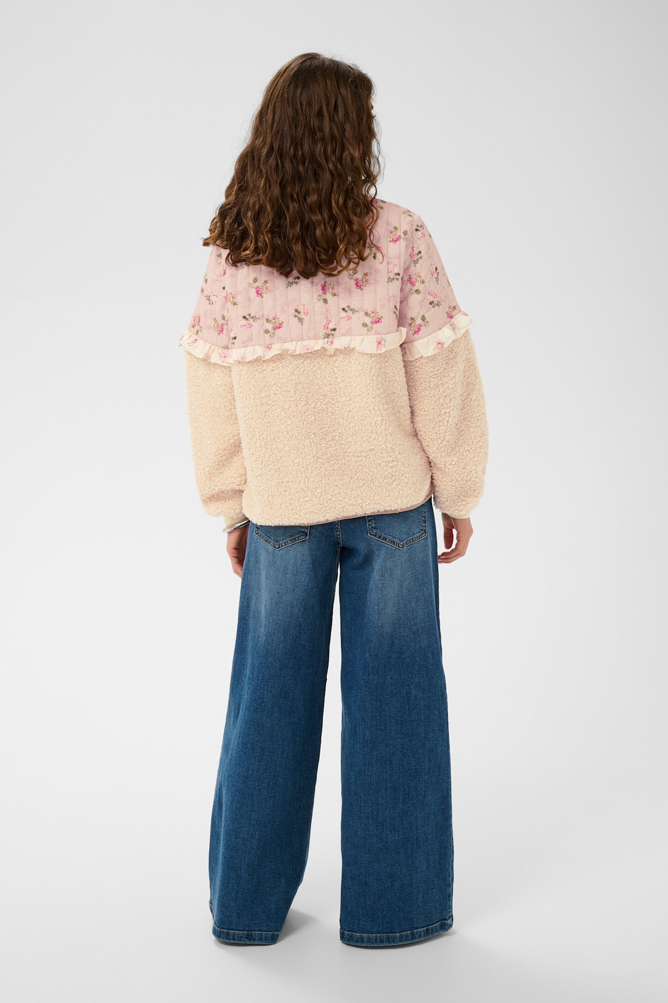 This half-zip pullover blends a romantic floral print with ultra-plush sherpa for the perfect mix of style and comfort. The delicate ruffle detail adds a charming touch, making it an easy standout for everyday wear.