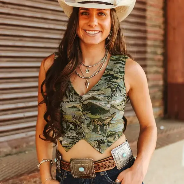 -Perfect for a night out, country concerts, or everyday ranch wear, this vest pairs effortlessly with denim and your favorite denim. Whether you're dressing up for a photo shoot or elevating your daily western look, this tapestry vest brings texture, personality, and western charm to your wardrobe.